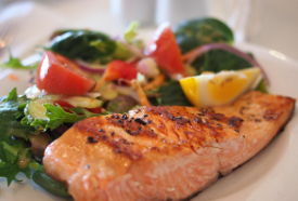 - 연어샐러드: 구운 연어 + 양상추 + 올리브유 드레싱